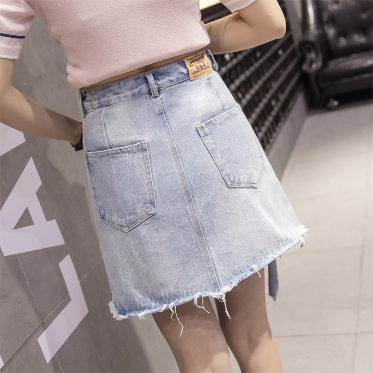 / 韓版高腰牛仔裙半身裙女夏季包臀短裙A字裙防走光褲裙破洞大碼裙