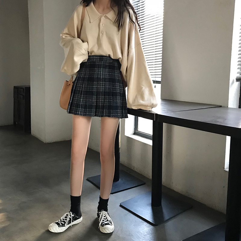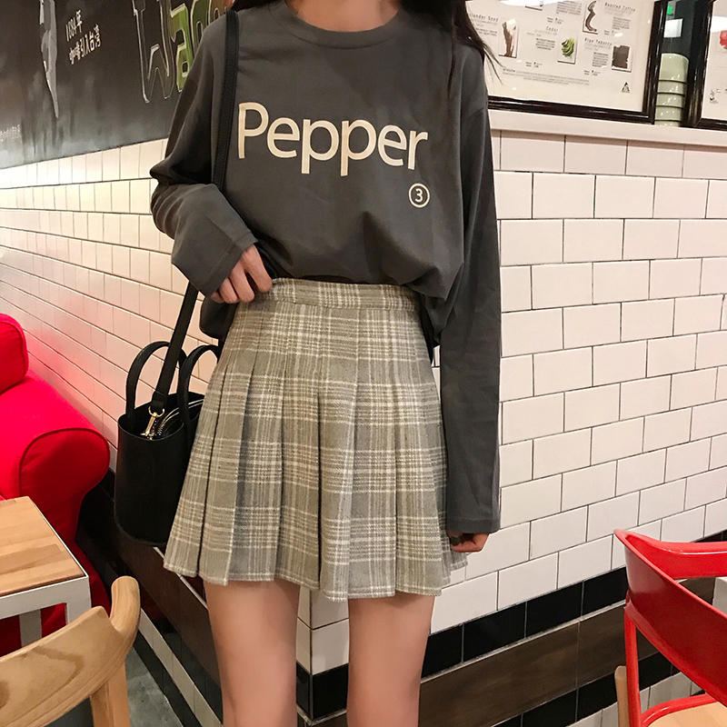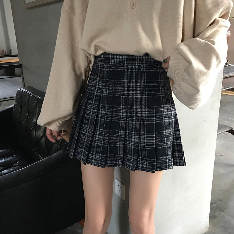 / 裙子女2018秋冬韓版新款chic寬松高腰格紋百搭半身裙a字裙百褶裙