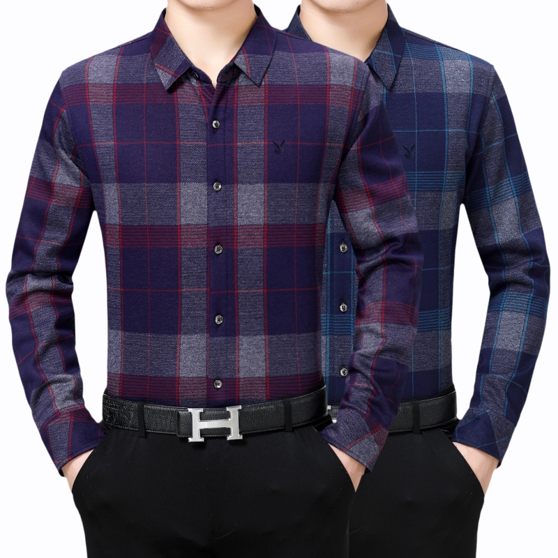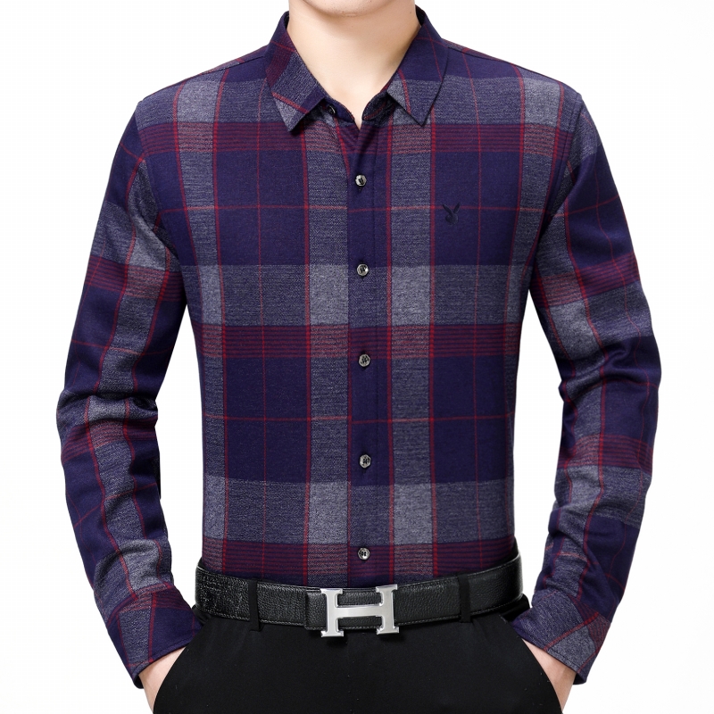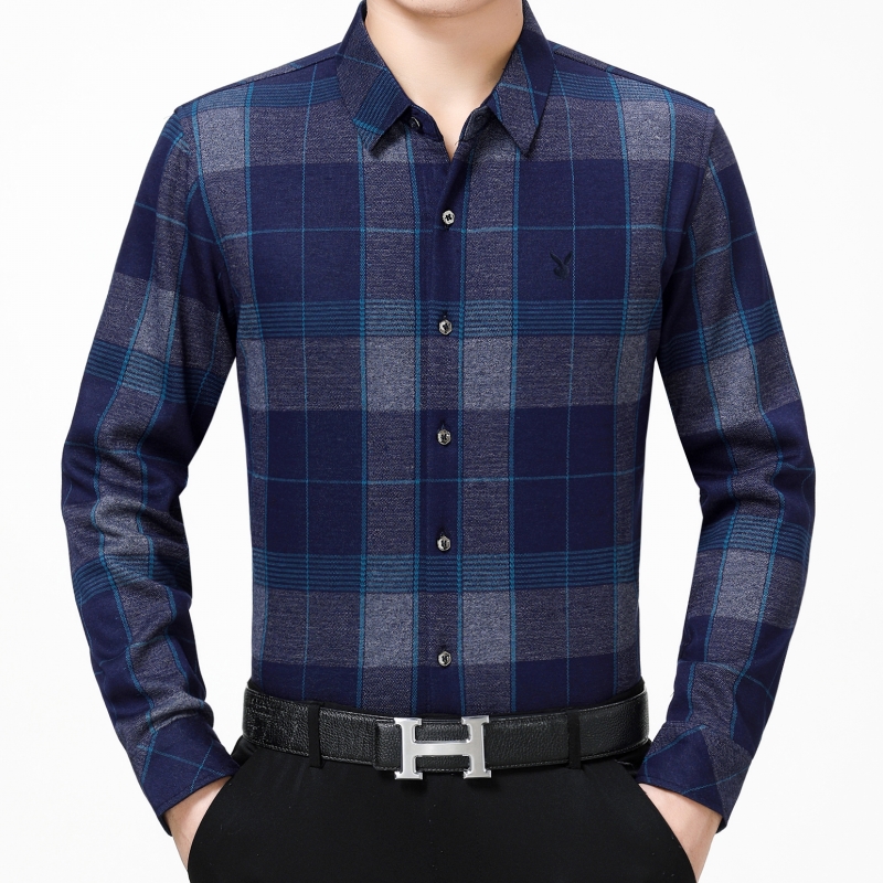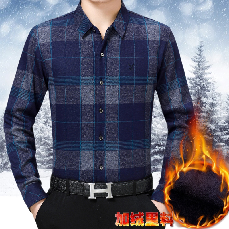 花花公子正品中年男士長袖羊絨保暖襯衫商務男裝加絨加厚襯衣冬季